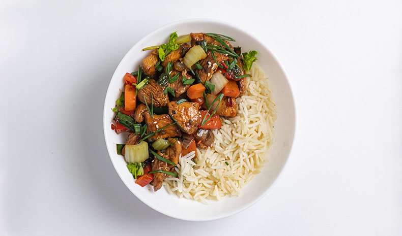 Локшина рисова, яйце куряче, стегно куряче в паніровці ...