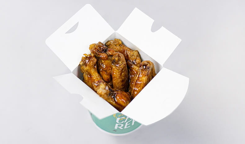 Курячі крила, обсмажені в міксі спецій з часником, кунжутом, імбирем, зеленою цибулею та соусом генерала Цо.